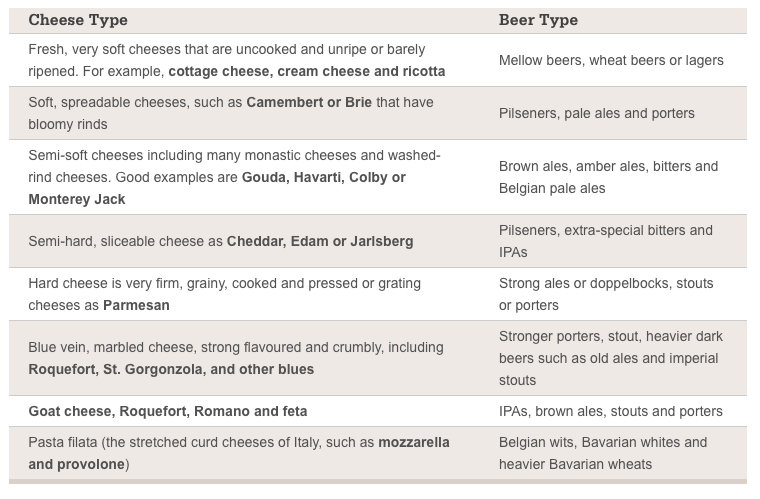 Here is an awesome table from The Beer Store outlining the right beers to pair with different cheeses - just for fun!